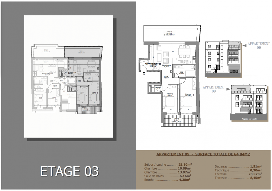 À l'intérieur de l'appartement d'une surface nette de 64,84 m² :