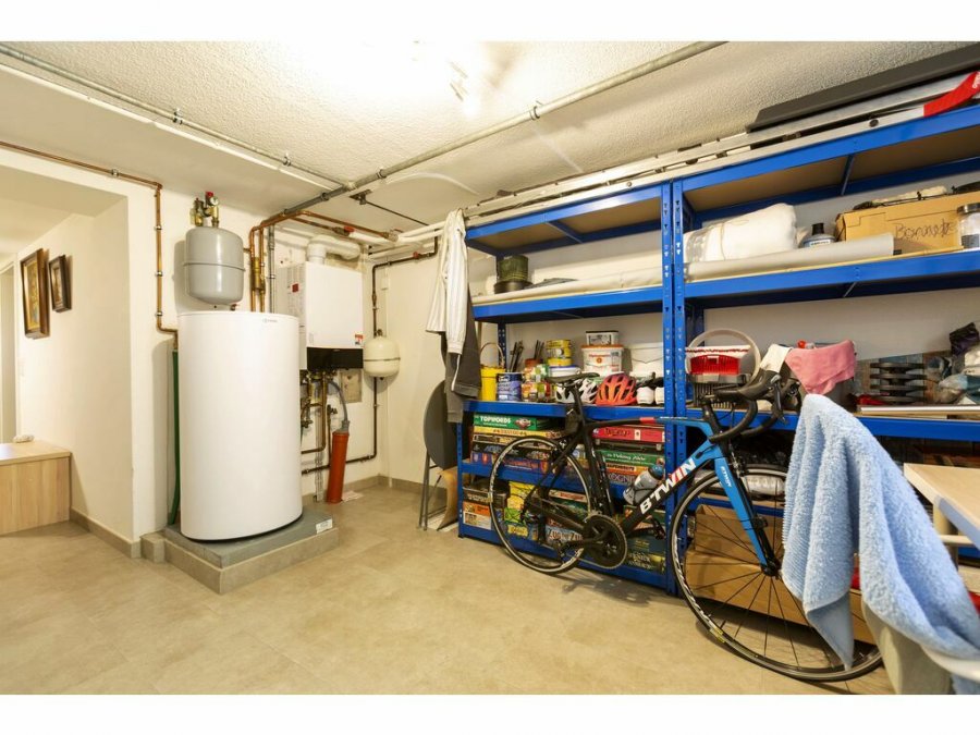 Cave aménagée : buanderie avec accès au jardin, chaufferie, atelier et salle de douche. Parfait pour combiner pratique et confort au quotidien.