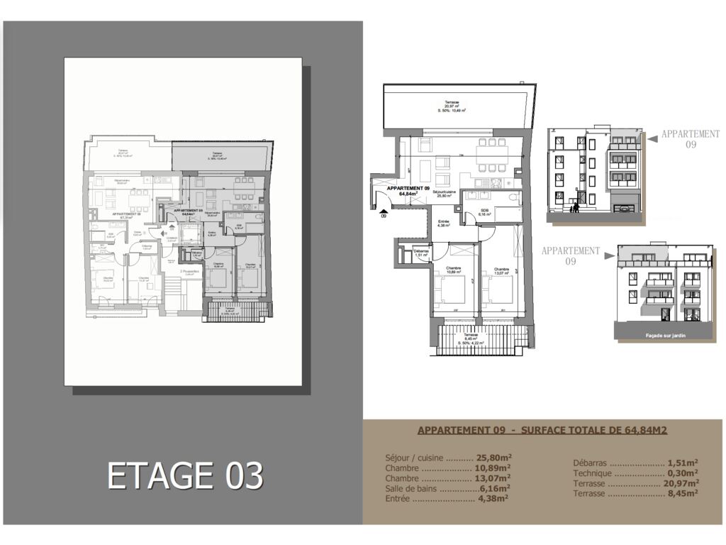 À l'intérieur de l'appartement d'une surface nette de 64,84 m2 :