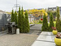 Le bureau et une des deux chambres s'ouvrent sur une superbe terrasse de 31 m², parfaite pour profiter du soleil et de la vue dégagée.